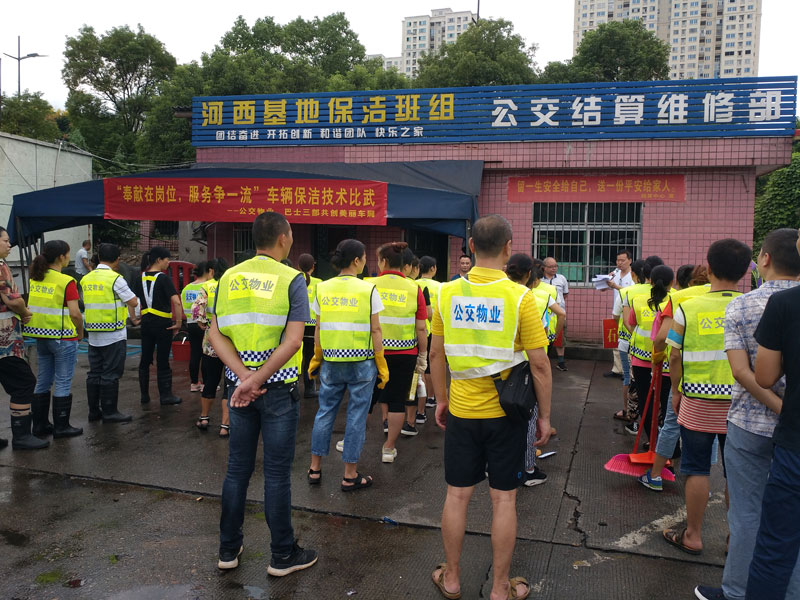 為進一步提高服務(wù)質(zhì)量,營造優(yōu)美乘車環(huán)境,提升公交窗口新形象。8月30日上午,公交物業(yè)公司與巴士三部在河西基地停車坪內(nèi)聯(lián)合開展"奉獻在崗位,服務(wù)爭一流"車輛保潔技術(shù)比武活動。物業(yè)公司30名參賽隊員和巴士三部駕駛員組合成5個小組進行技能比拼,站場和物業(yè)班組長分別到場觀摩學習。
