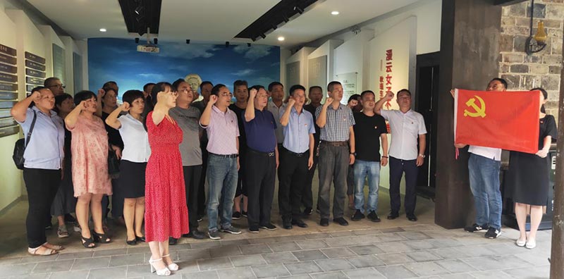 第一站,黨員干部來到秋瑾故居,參觀學(xué)習(xí)秋瑾生平光榮事跡,探尋紅色精神,深刻緬懷先烈,并重溫入黨誓詞。