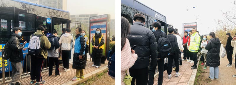 一是做好運輸保障組織工作。公司提前對途經(jīng)職教城的公交線路進行全面客流摸底調(diào)查,在現(xiàn)有運力的基礎上,按需增加運力、加密班次,同時合理儲備應急車輛,利用智能調(diào)度系統(tǒng)對線路實時監(jiān)測,準確掌握客流變化,出現(xiàn)客流突增情況,立即啟動應急預案,確保學子能及時乘上放心滿意的公交車。